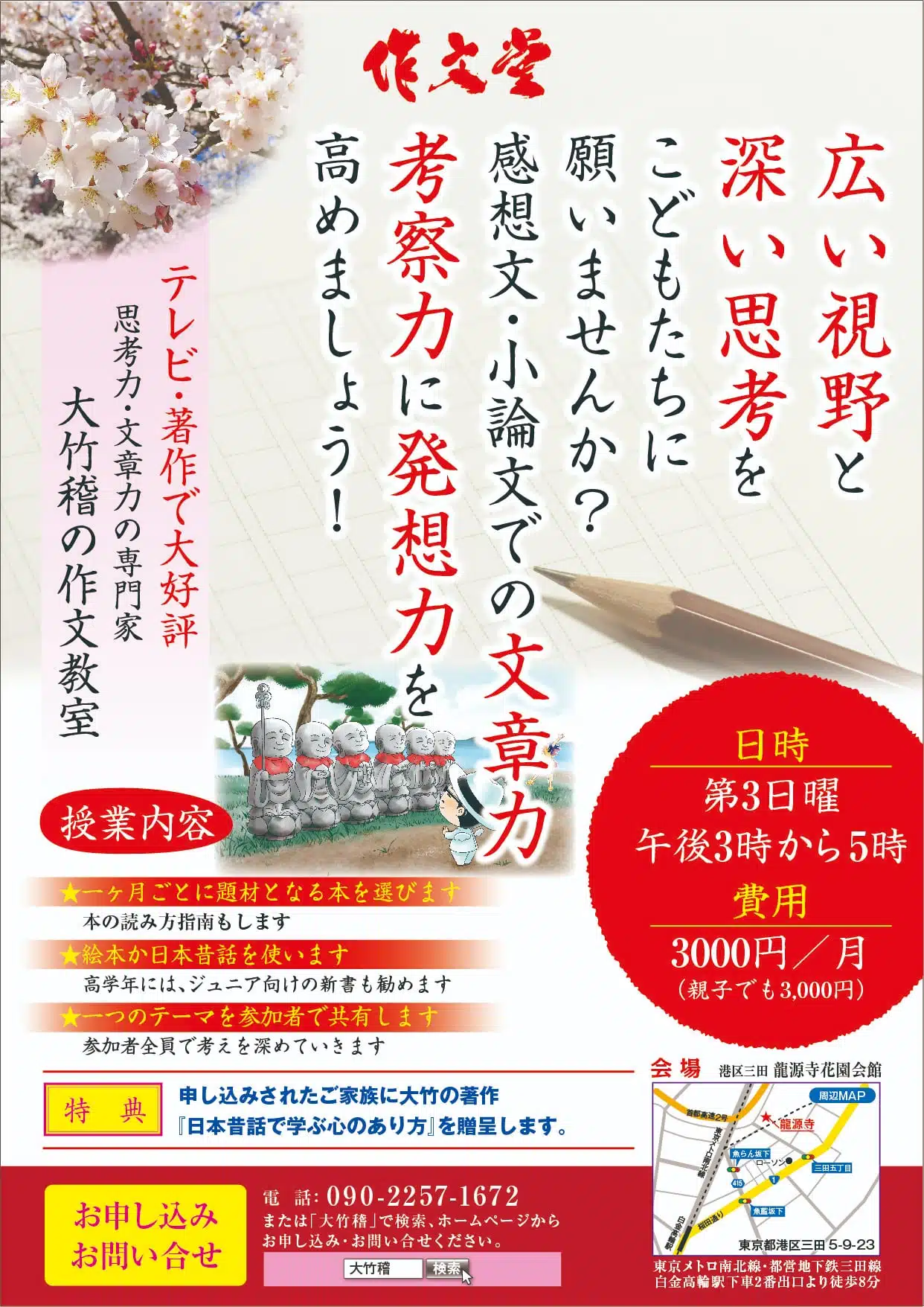 大竹稽が少人数の作文教室をお寺で開いています。